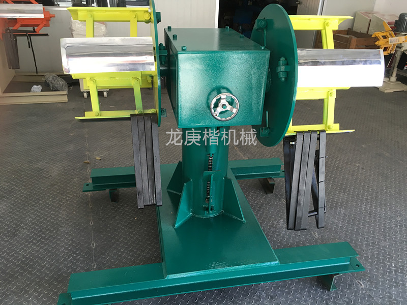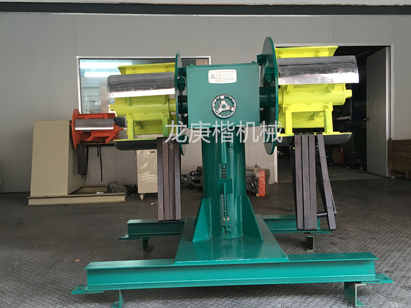 雙頭材料架則是龍庚楷專門研發、生產、制造出的用于代替重型材料架的快速換料設備,其有兩個漲縮承料卷筒,可一次放置兩個金屬料卷,當一卷用完以后,另一卷可以馬上銜接上,可不用停機,保證沖壓生產線的連續生產,極大的縮減了換料調試時間,提高了生產效率。